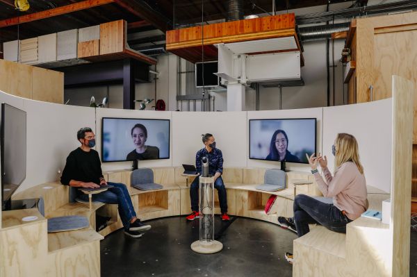 为了应对员工远程办公和线下办公相结合的情况,谷歌还设计了一种名为Campfire的新会议室,现场与会者围坐在一起,会议室里放置着大型显示器,能够展现通过拨号接入视频会议的同事的脸,这样远程工作者就可以更有实感地和线下工作的同事们一起开会了。