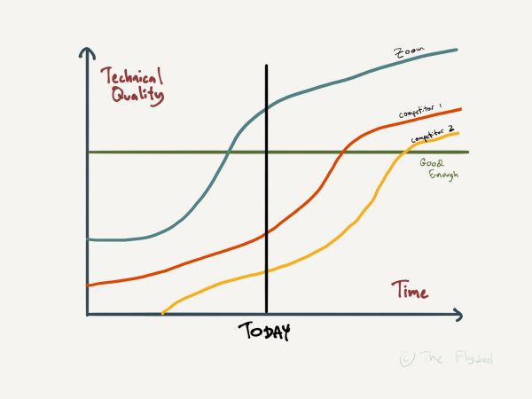 2.在某种程度上,技术已经足够好,我们可能还没有到那一步(或者如果我们到了那一步,Zoom已经超过了 “足够好 ”的门槛),但可以想象的是,在未来的几年里,我们会做到这一点。你可以争辩说,就像平板电视一样,总会有一些新的标准,但我很难想象用户在超过一定的质量门槛时还会多关心用户体验的细微差异。