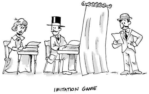 但是仔细阅读图灵的文章,就会发现一个细节,这个细节在测试中引入了模糊性,这表明也许图灵的意思更多的是对机器智能的哲学挑衅,而不是一个实际的测试。