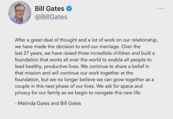 比尔·盖茨夫妇宣布离婚,1305亿美元财产面临分割