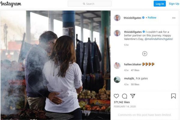 2020年2月14日,比尔·盖茨还在社交媒体上发了一张揽着梅琳达的照片,称自己“不能求得更好的人生旅途伴侣”。