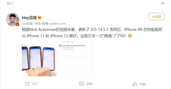 YouTube主播Nick Ackerman通过实测证实了大家的猜测,而结果也令人大吃一惊:在更新到最新版系统后,iPhone 11、iPhone 12的性能均不如多年前发布的iPhone XR。