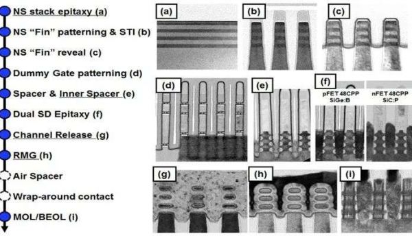 与纳米线结构相比,纳米片结构的接触面积更大,但不利于片与片之间的刻蚀(通过化学或物理的方法去除硅片表面不需要的部分)和薄膜生长(集成电路在制造过程中需要在晶圆片表面生长数层材质不同、厚度不同的薄膜)。