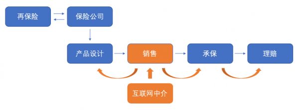在保险产业链中,初创公司能介入的环节有:设计、保险中介、承保、理赔等。