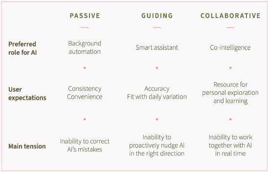 这项研究给出了三种不同类型的AI交互方式: