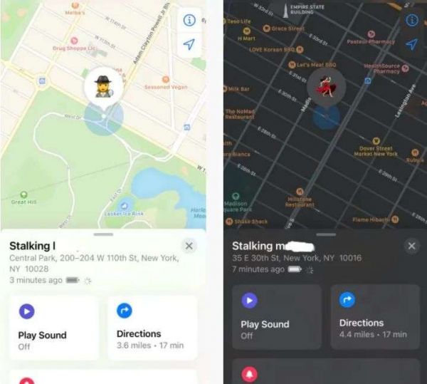 在两天的时间里,她的室友携带着AirTag分别在哈莱姆区和格林威治村活动,而人在曼哈顿和布鲁克林之间奔波的布伦达,随时都可以通过手机上的Find My应用程序看到两位室友的具体位置。这个距离已经远远超出了布伦达的手机蓝牙范围。