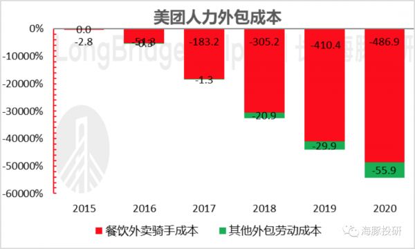 2020年美团外卖骑手成本在外卖GTV中的比重是10%,海豚君多加这100亿进去后,这一比重就会变为12%。