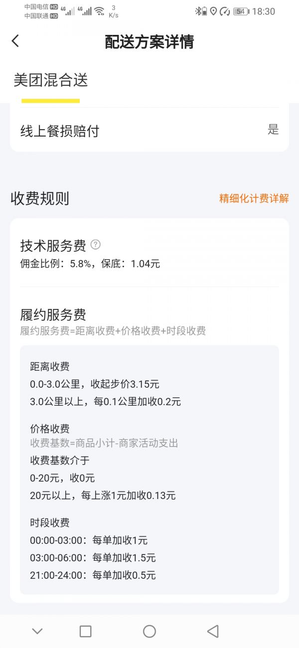 顾客实际支付了24.79元,而老张的预计收入只有11.13元,平台的抽成超过了50%。他点开抽成细则,发现履约服务费明显比平时高出来许多。