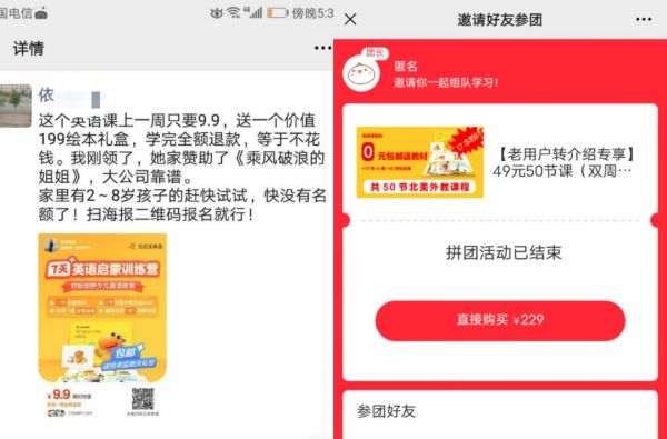 另外,李红也表示,由于广告的投入减少,他们也加入到地推的行列,加强线下推广。例如,平台有时会推出代言人活动,依靠家长充当宣传员,按活动要求,家长每天在朋友圈里发相关的宣传文件,并截图发到社群里,由李红这样的班主任统计,达到要求的家长可以免费续课。同时,也会推出品推活动,以低价争取那些正在犹豫中的家长。4月份,李红的续报率提高了10%左右。