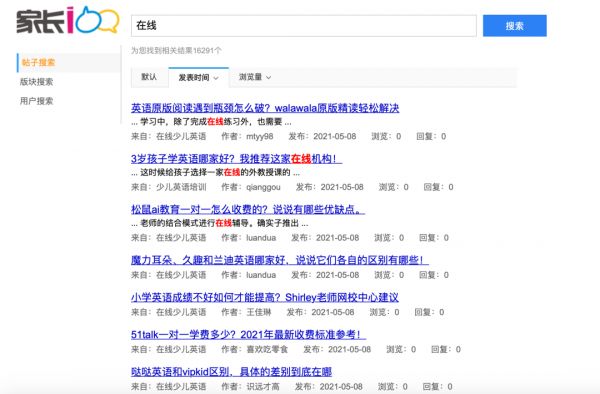 另外,中小型线上教育机构也开始在本地主要的家长论坛里,发布一些营销广告,通过图内所示,还可以看到VIPKID、51Talk等也参与本地化的竞争中。