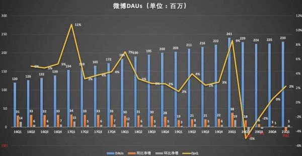从具体用户增长数据看,2021年一季度,月活用户数相比上年同期减少2000万,较上一季度净增900万。