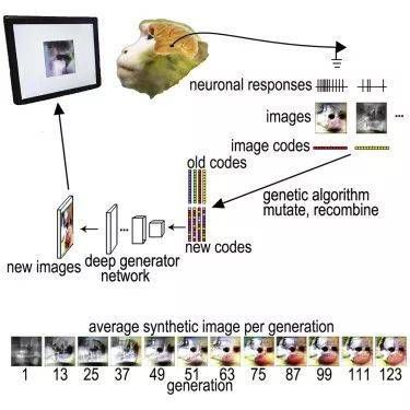 根据发放强度的反馈合成神经元喜爱的图像(图片来源:参考资料[1])