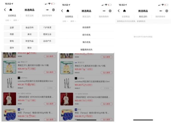 购物号主可以通过品类、排序等多个维度“选品”