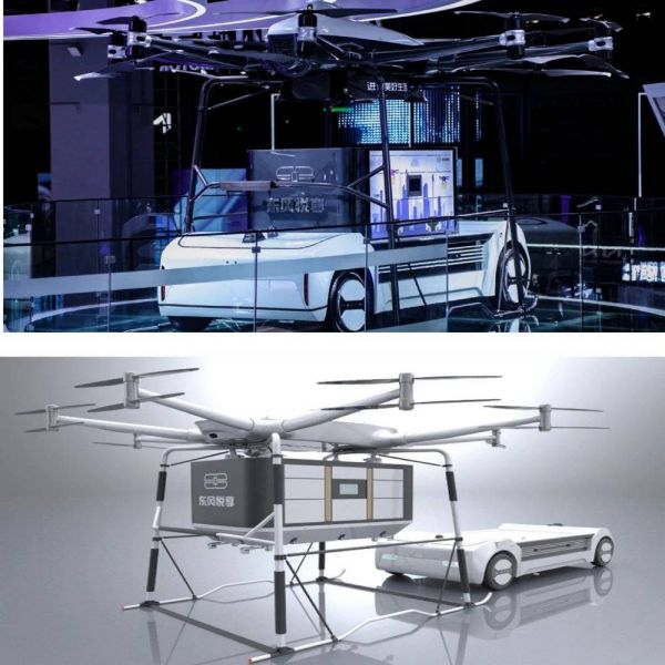 东风悦享的Sharing-Aircraft,其实上端的飞行器和带轮子的底盘是可以拆分,整体没有完全耦合。