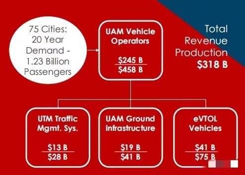 这个市场的未来想象空间非常可观的,一家外商投资公司NEXA预测,UAM整个市场未来20年会有12.3亿人次的乘客出行需求,总共收入可达到3180亿美元。