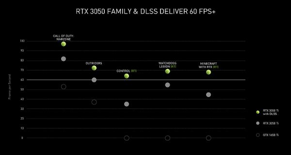 基于DLSS,英伟达称RTX 3050 Ti笔记本电脑性能可达上一代产品的2倍甚至更高。举例来说,在游戏《控制》上,开启光追与中等画质和DLSS,可以在1080P分辨率超过60fps。在一些新款游戏上达到流畅水平,以低价的主流笔记本而言,是一个相当不错的数字了。