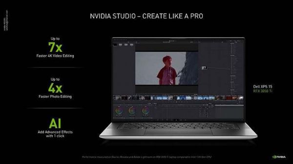 针对专业内容创作部分,英伟达也陆续与笔记本品牌合作推出为数相当的创作者笔记本电脑,除了许多内容制作软件加入对GPU加速的支持以外,搭载RTX 3080的电脑具备达16GB的显存 ,满足高清晰度影片、 3D内容创作,以及提供8K HDR RAW的编辑能力。另一方面,对于英伟达主要推动的协同创作应用Omniverse,新款笔记本借助DLSS,可以加快创作效果。
