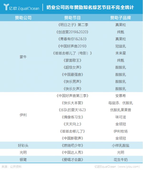 蒙牛与伊利几乎瓜分了中国的头部综艺
