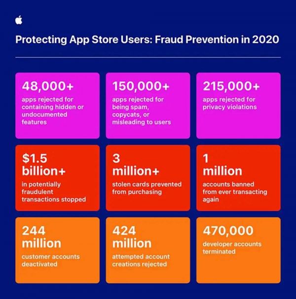 15 亿美元,这是苹果 App Store 2020 年阻止的可疑交易总金额