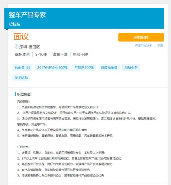 最前线 | 货拉拉启动造车项目,已开始招募新能源货车制造人才