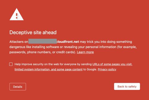 当我们第一次遇到这个问题时,我们用各种方法试图了解发生了什么,我们学习了Google安全浏览(GSB)的工作原理,同时我们的技术支持团队试图跟上客户报告这个问题。我们很快意识到,我们用于服务静态资产(CSS、Javascript和其他媒体)的一个Amazon Cloudfront CDN URL已被标记,这导致我们使用该特定CDN的客户实例的整个应用程序失败。对据称受影响的系统进行快速检查后发现,一切看起来都正常。