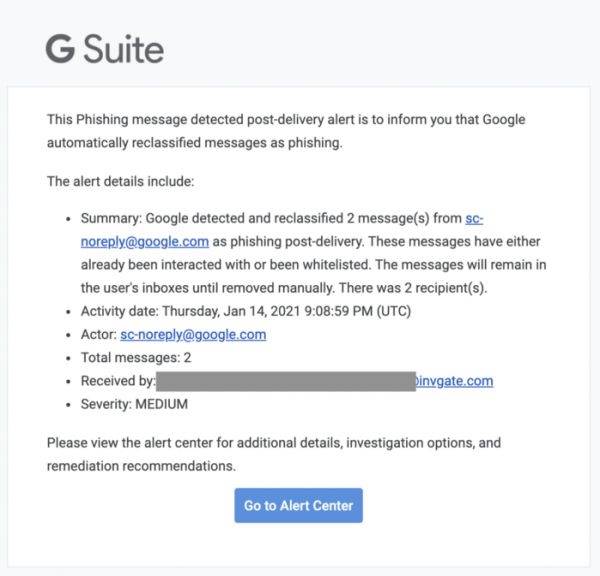 让我总结一下,因为它相当令人震惊。这封邮件指的是搜索控制台的黑名单提醒邮件。这第二封邮件说的是,G Suite的自动钓鱼邮件过滤器认为谷歌搜索控制台关于我们的域名被列入黑名单的邮件是假的。这当然不是,因为当我们收到这封邮件时,我们的域名确实被列入了黑名单。所以,谷歌甚至不能决定它自己的关于钓鱼的电子邮件警报是否是钓鱼的。()