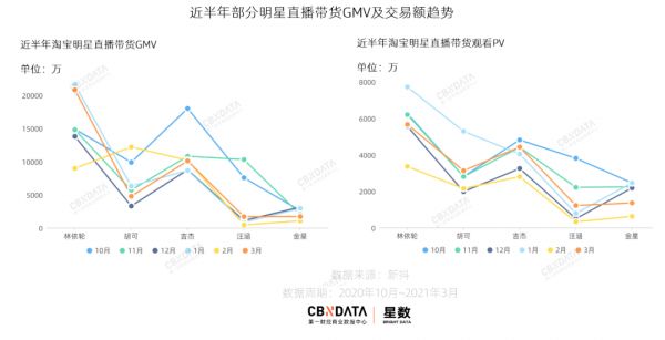 抖音方面,杨颖、关晓彤、金晨等明星首秀即结束,带货成绩不错的李诞、王祖蓝、陈志朋等从1月份开始也都相继停播。