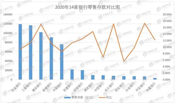 以银行的零售贷款业务为例,中国软件网根据公开数据整理了14家银行在2020年零售贷款额后发现,除了中信银行和浦发银行的零售贷款同比增长了9.31%和6.98%外,其余的12家银行的零售贷款业务均保持两位数的增长。而在零售存款业务中,14家银行该项业务增势显著,平安银行、光大银行零售存款业务同比增长均超过17%。