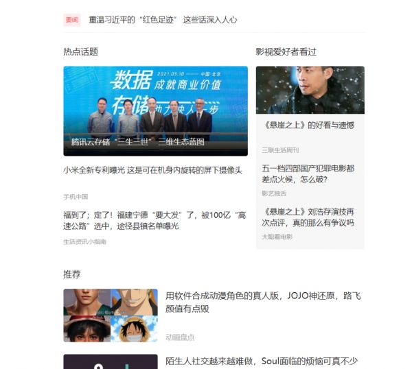 热点话题与专题的设置,就是连接个人兴趣的公共议题,在形式上多少有了些简化版的“资讯门户”的特点。