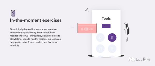 Unmind服务的核心是围绕一系列问题来帮助员工探索自己的心理健康状况,其中可能包括抑郁,焦虑,失眠和许多其他表现。它与EAP(员工心理帮助计划)或远程治疗等服务相辅相成,从而使员工可以使用主动的、自我指导的工具来测量、理解和培养其心理健康。