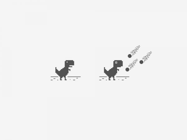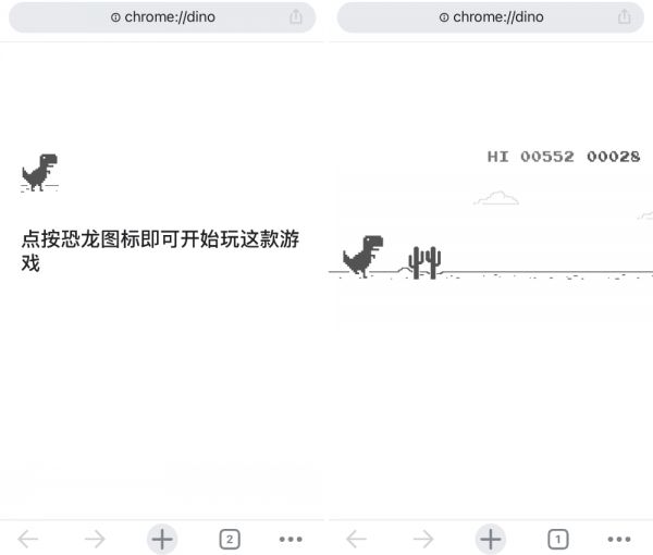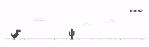 只要在断网状态下打开 Chrome,按下空格键开始游戏,这只短手短脚的小恐龙就会在永无尽头的地平线上不断奔跑、通过操控躲避仙人掌,直到撞上去后游戏结束。