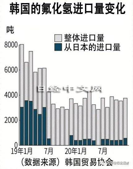来到材料方面,据日经在今年二月的报道,韩国在半导体相关材料的本国制造产品已开始普及。从韩国贸易协会发布的数据可以看到,2020年来,韩国自日本的氟化氢进口量比2019年减少75%。而来自海外的氟化氢进口量整体也减少50%。