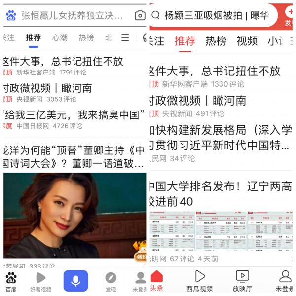 百度、头条app主页对比