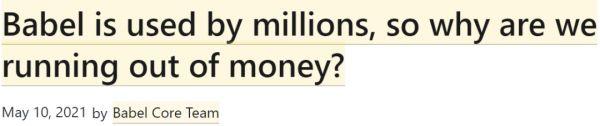 Babel 团队写道:「我们坚信,开源工作应是一条行得通和可持续的职业道路。但现在,我们不得不面对一个残酷的事实:几个月后就没钱了。」