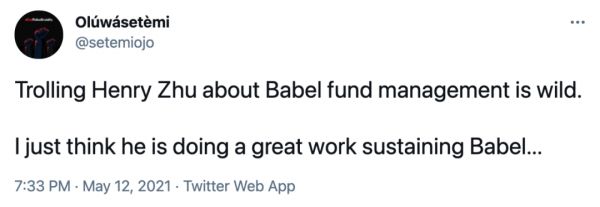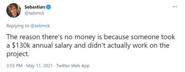 Sebastian McKenzie 现在是另外一家公司 Rome 的负责人,已经不再从事该项目的维护工作。他发了一条推特内涵核心团队成员 Henry Zhu 居其位而不谋其事:「之所以没有钱,是因为有人拿了 13 万美元的年薪,实际上并未从事项目工作。」