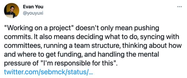 「维护项目不止意味着 push commit,还要管理团队、寻求资金来源,同时担负着精神压力。」