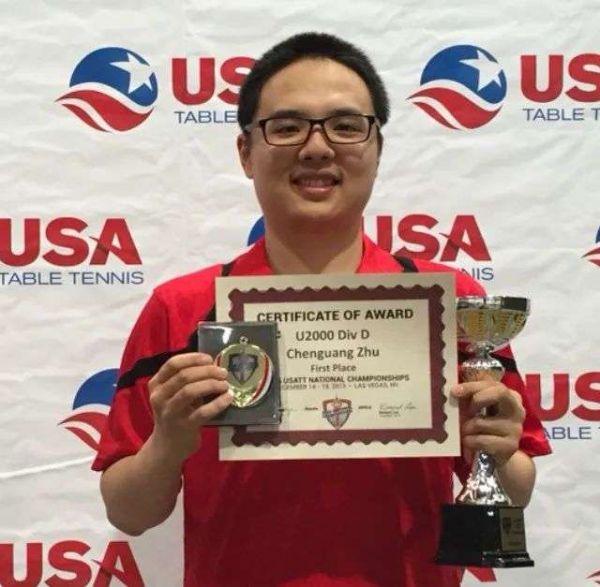 图注:朱晨光获得2015年美国乒乓球锦标赛U2000冠军