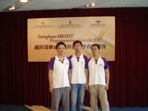 图注:2007年,朱晨光(最左)与唐文斌(中间)、刘贺组队参加两岸清华编程竞赛