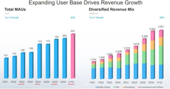 5月13日,哔哩哔哩(B站)发布2021年Q1财报,其业务迎来全面增长。财报显示,B站Q1营收39.0亿元,同比增长68%;B站月均活跃用户同比增长30%,移动端月均活跃用户同比增长33%。