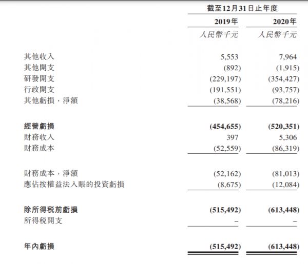 由于乐普生物目前尚未产生任何产品销售收益,但是在高昂研发开支及行政开支下,必然会产生大额亏损,最近两年合计亏损超11亿人民币。其中2019年及2020年,分别亏损5.1亿和6.1亿人民币。