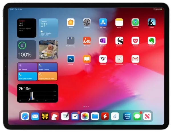 想充分利用硬件机能,那还是得从主界面更新开始做起。根据外媒报道,苹果在iPadOS 14中带来了全新的桌面功能。现在,用户可以选择让应用或者插件以大图标直接放在桌面的任意位置,甚至整个应用程序网格都可以用小部件替换,以便显示更多内容。