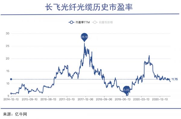 目前A股的亨通光电,市盈率(TTM)仍然在25倍,而长飞光纤此后于2018年在A股上市,截至目前市盈率同样在25倍左右,H股的估值大幅低于A股。