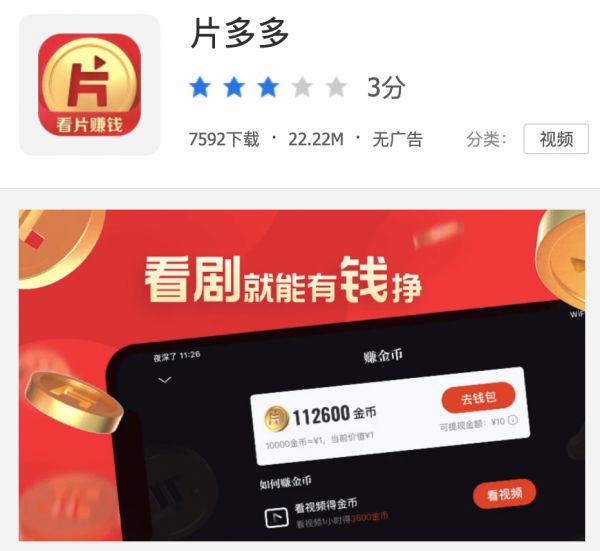 「看片赚钱」甚至已经成为片多多的 Slogan,而它的 Logo 主体,也正是一枚金币|腾讯应用宝