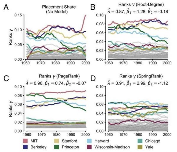 在数学学术交流网络中,由于精英有限,排名偏低的学校很难招聘到排名高的学校的师生。在长尾小鹦鹉种群中,邻近水平的相互攻击可能通过传递威望以促进对统治等级的巩固。在兄弟会关系中,内在的社会规范可能驱使地位相似的人相互为伴。因此,虽然我们在参数估计中没有将这种模式归因于一种普遍的机制,但研究者们认为它这种等级的长期性将是未来研究的有趣课题。