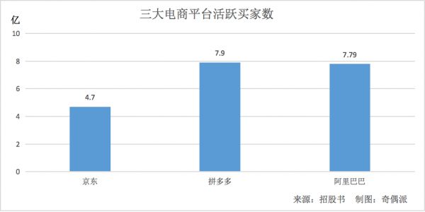 三大电商平台活跃买家数(制图:奇偶派)