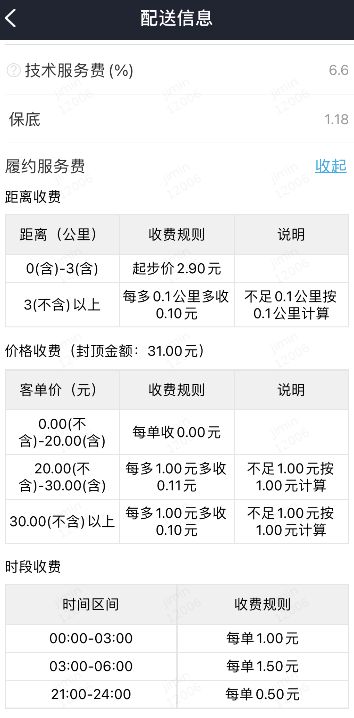 配送费起步价为2.9元,超过3公里之后,距离每增加0.1公里平台加收0.1元; 用户支付金额在20元内不加价,在20元~30元区间带,每1块钱里加收0.11元,高于30元的部分每1块钱里加收0.1元; 晚上9点之后的订单,每单加收0.5元。(不同城市、不同品牌的收费规则可能会存在细微差距)