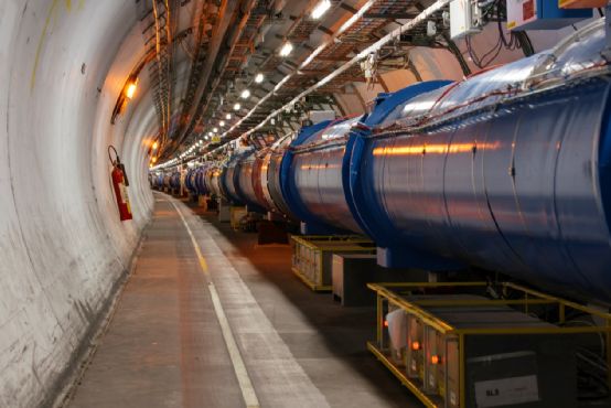 加速器就是提升带电粒子能量的装置,老式电视机显像管其实就是一种加速器,能够加速电子轰击屏幕发光。目前,世界上最大的欧洲大型强子对撞机(LHC)也是一种类型的加速器,能够把质子加速到99.999999%的光速,然后让两束这样的近光速粒子流发生迎头碰撞,产生大量次级粒子,观察其中发生的物理现象。