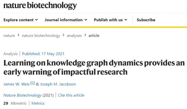 图|知识图谱的结构动态包含未来科学影响力的信息(来源:Nature BiotechNoLogy)