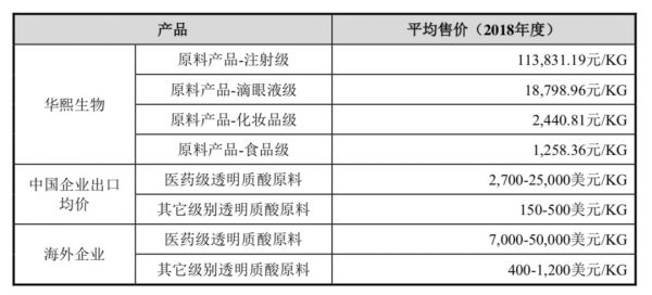 华熙生物原料产品平均售价 来源 / 华熙生物招股书