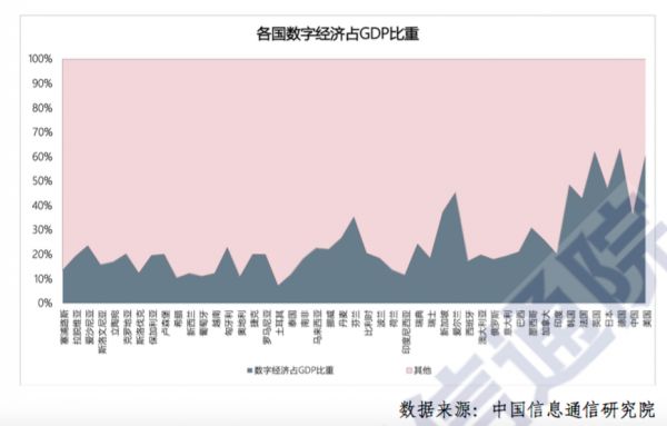 但是,工业互联网的改造对推进数字化是重要一环。根据中国信通院发布的《全球数字经济新图景(2020年)》,德国数字经济占GDP的比重是63.4%,排名世界第一,主要归功于工业4.0战略,将其产业数字化程度提升到90.3%。而中国和美国则是服务业数字经济渗透率明显高于其他行业。